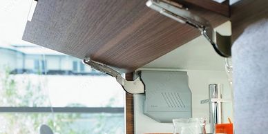Synergy uses Blum soft close top of the line hinges on all our cabinet doors.
